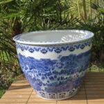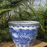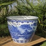 Cache pot  céramique chinois bleu de toute beauté représentant la période de Quinming ( la fêtes des morts /fêtes du printemps en chine ) peint a la main !   en 80 litres hauteur: 42cm largueur: 63cm en 150 litres hauteur: 62cm largueur: 82cm