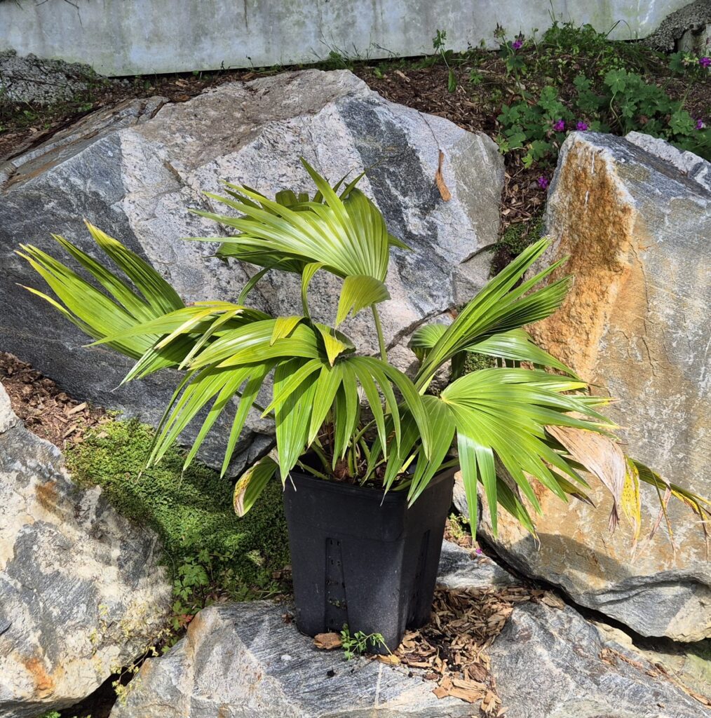 Palmiers fontaine ou palmier éventail en tout cas palmiers zen du japon , moyennement rustique quand il est jeune mais a l âge adulte c’ est mieux avec -10°C lui choisir un coin protégé au jardin